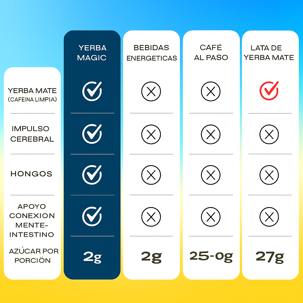 Sustituye el café por una bebida inteligente: yerba mate instantánea con Lion’s Mane, L-theanina y fibras funcionales para tu mente y cuerpo.